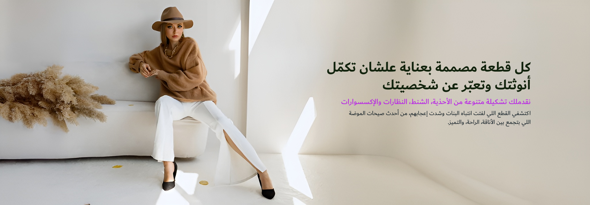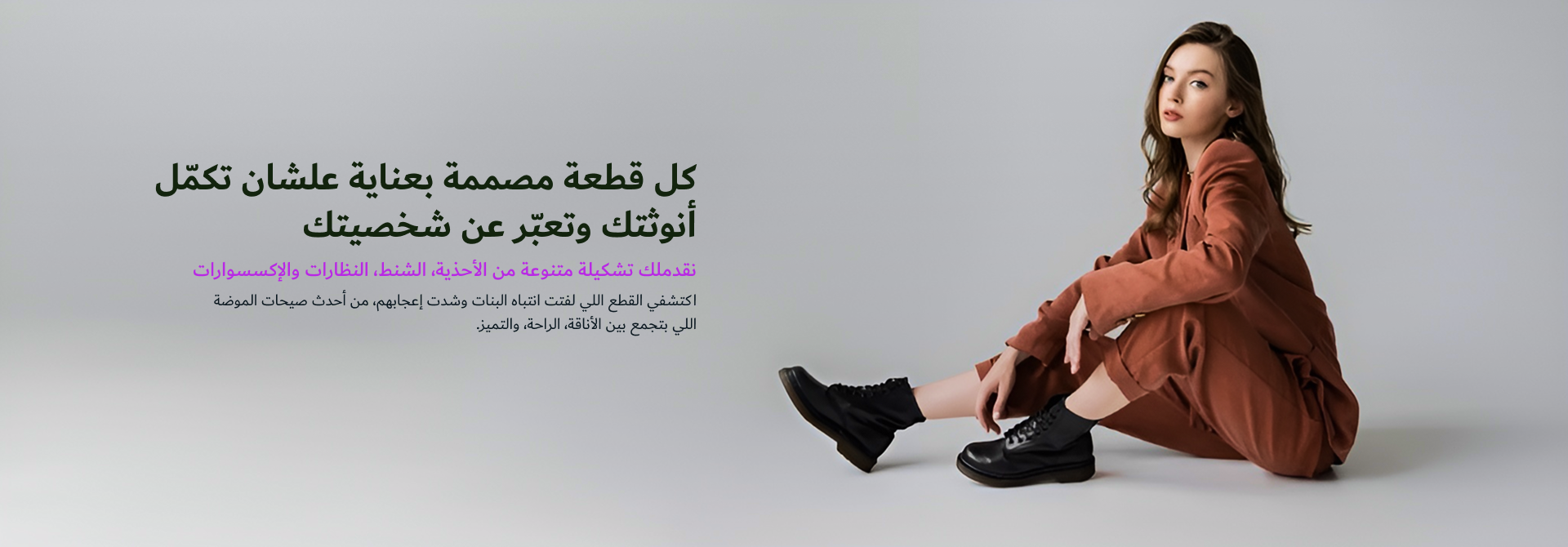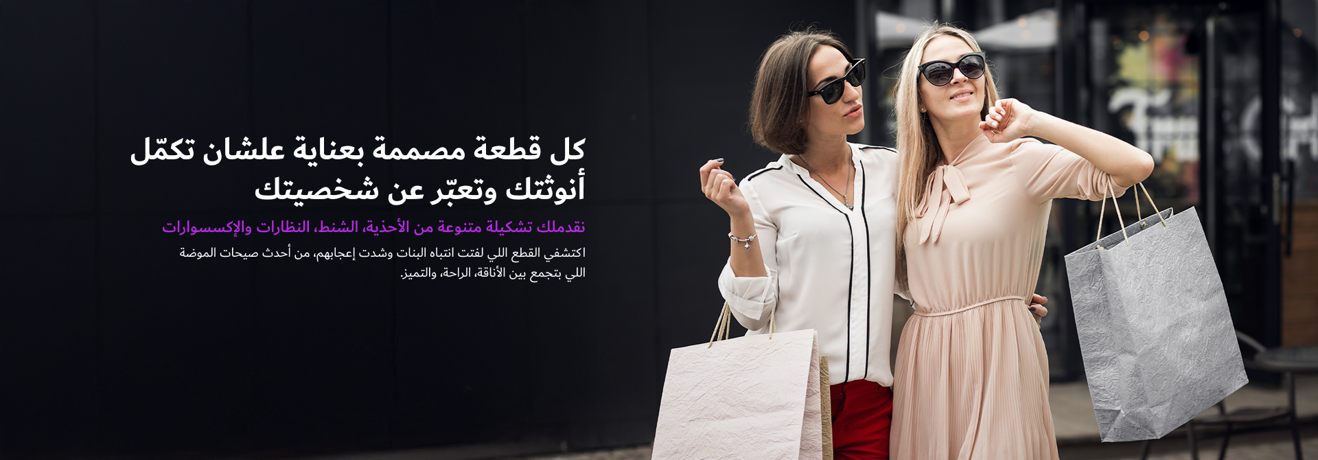 اكتشفي مجموعتنا المتنوعة من الأحذية، الشنط، النظارات والإكسسوارات اللي بتواكب أحدث صيحات الموضة وتناسب كل ذوق وكل مناسبة.